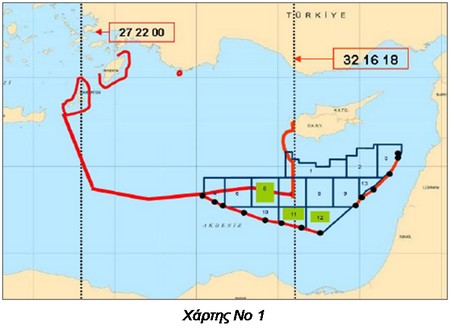 • Στο χάρτη Νο 1 παρουσιάζονται οι θέσεις του Τούρκου καθηγητή Sertaç Hami Başeren του πανεπιστημίου της Άγκυρας, ο οποίος θεωρεί ότι με τη χάραξη των ορίων της Α.Ο.Ζ. που προτείνει, αφενός η Τουρκία θα δείξει ότι δεν αστειεύεται, αφετέρου θα αποκοπεί η γεωγραφική σχέση (διασύνδεση, επαφή) μεταξύ Ελλάδος και Κύπρου. Παράλληλα ο Yaycı τονίζει ότι η Κυπριακή Δημοκρατία παραβιάζει τα δικαιώματα της Τουρκίας στα οικόπεδα 1, 4, 5, 6 και 7.