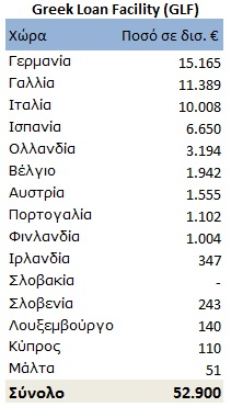 Αξίζει να επισημανθεί ότι απευθείας από τους κρατικούς προϋπολογισμούς (δηλαδή από τους πολίτες της κάθε χώρας της Ευρωζώνης) έχουμε λάβει μόνο τα ποσά των δανείων GLF (52,9 δισ).