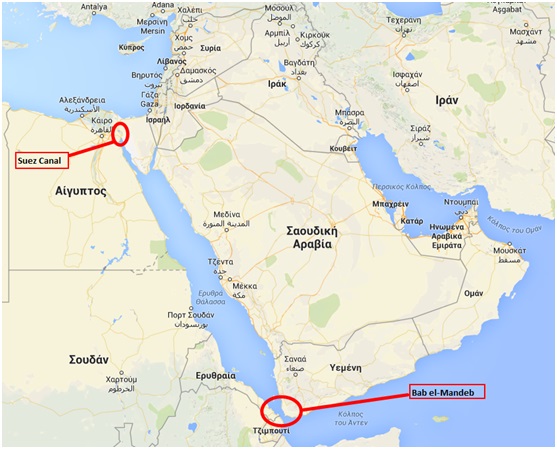 διελεύσεις από τη διώρυγα του Σουέζ, που διακυβεύονται από μία πιθανή