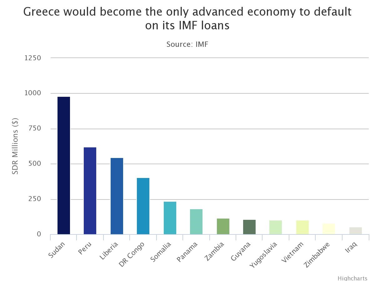 Παρά το γεγονός ότι κανένα ανπετυγμένο κράτος δεν έχει ποτέ αθετήσει επισήμως τις υποχρεώσεις του στην μετά Betton Woods εποχή, η Ελλάδα θα ενταχθεί στην ατιμωτική λίστα των εθνών που σπαράσσονται από τον πόλεμο και στους διεθνείς παρίες που έχουν αποτύχει να αποπληρώσουν το Ταμείο εγκαίρως